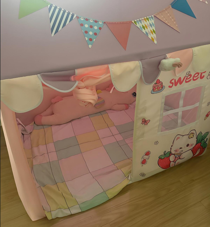 Tips:我有个朋友给女儿在床边搭了一个小帐篷,女儿超级喜欢,每天晚上都很期待,一个人睡觉的时光。分床睡很顺利,分房睡也很自然地就衔接上了。